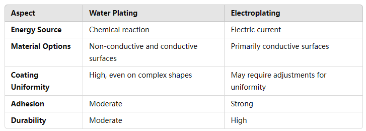 Comparison: Water Plating vs. Electroplating